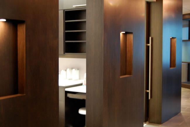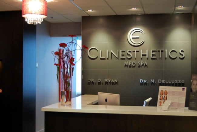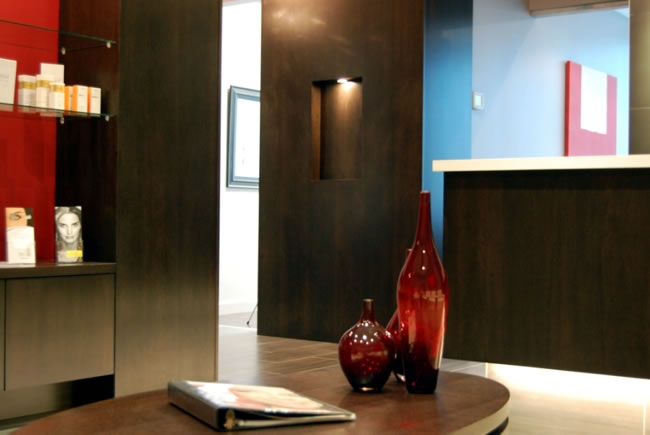 Clinesthetics A boutique spa specializing in non-surgical facial rejuvenation and aesthetics located in Vaughan. Dark rich contemporary millwork, clean lines, and white ‘clinic-like’ furnishings exude elegance and pampering befitting the services provided. |