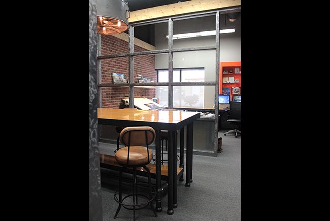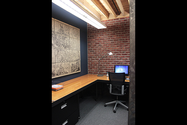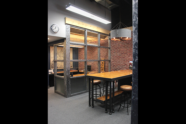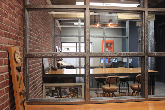 Downtown Uptown A collection of reclaimed materials, combined with an industrial material palette, used in unconventional methods produces an energetic and creative working environment. The varied palette of textures and colours gives the space enormous depth and visual relief. |