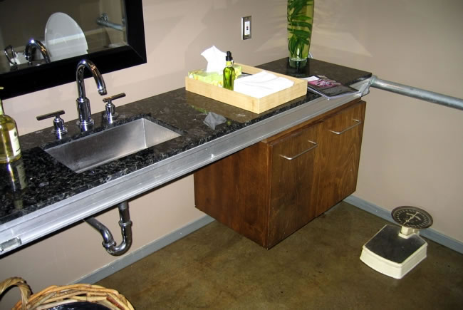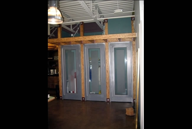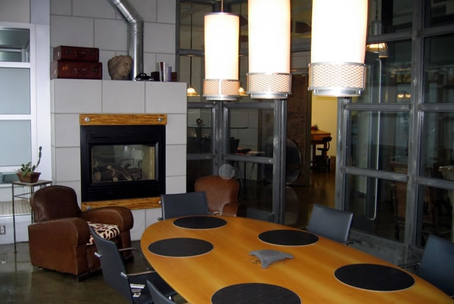 Elias Corporation Once a company of industrial building constructors, the second generation owners wanted a different image for the company’s new management direction. In keeping with the company’s industrial building background, we worked with an industrial material palette to create a contemporary interpretation of a typical office improvement, in an existing storefront building on a main street in Etobicoke. The interiors include polished concrete floors, hollow metal frame and glass partitions, exposed open web steel joists, and precast wall panels. |